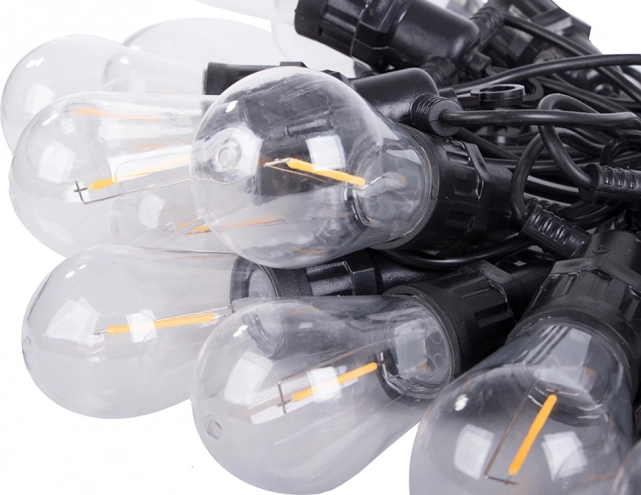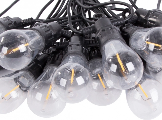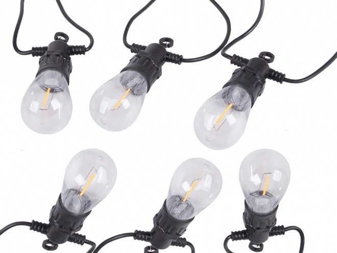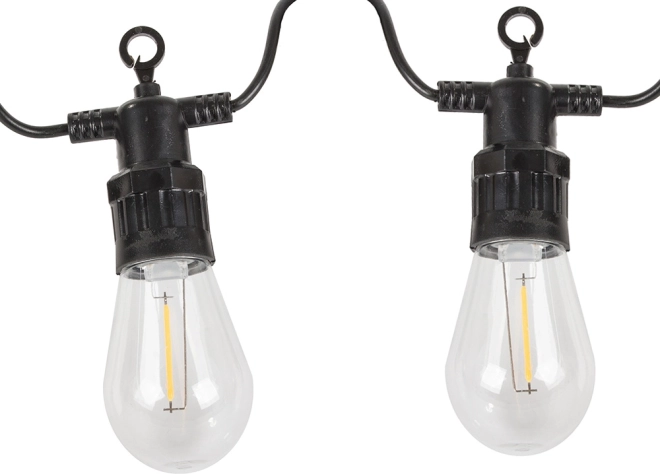 This garden LED garland is ideal for everyday relaxation as well as special occasions. Transparent Edison-style bulb covers glow with a pleasant warm tone, creating cozy, ambient lighting. With its IP44 rating, it is suitable for outdoor use throughout the season.