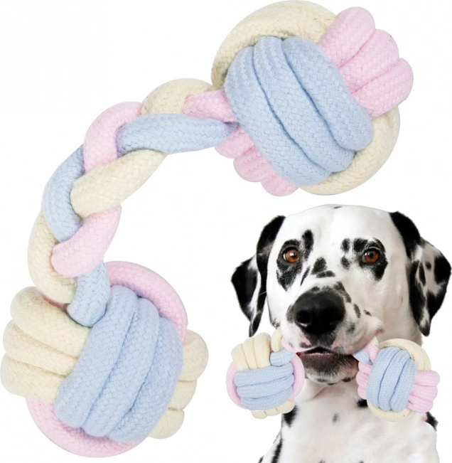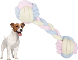 The toy is made from durable rope material that ensures long-lasting use even during intense play.