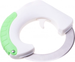 The multifunctional round knife is a great helper in every kitchen. It allows precise cutting, chopping, and dicing of various foods in one motion. It is ideal for cutting meat, herbs, pies, vegetables, fruits, pizza, and bread, which saves time and enhances safety during kitchen tasks.