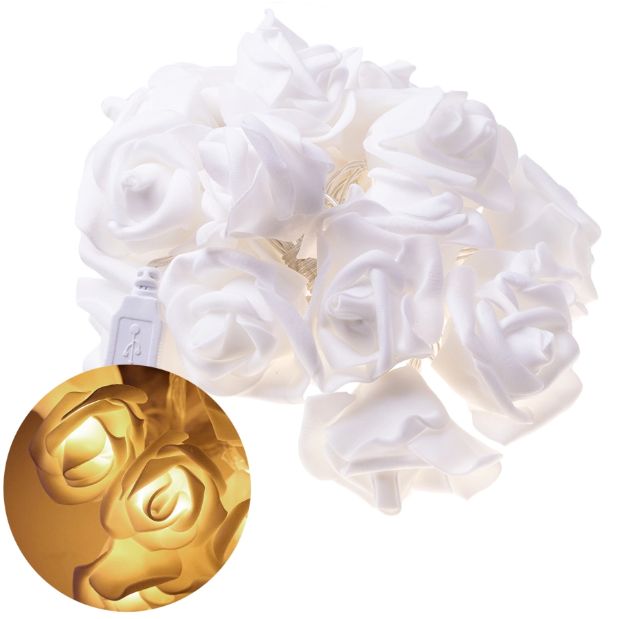 The rose-themed LED garland is a magical decoration for everyday moments and special occasions alike. Soft warm light shines through the floral diffusers, creating a pleasant, soothing environment ideal for unwinding or evening reading. Thanks to its low weight, you can easily hang it on a nail or hook, or wrap it around a bed, shelf, or mirror.