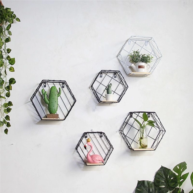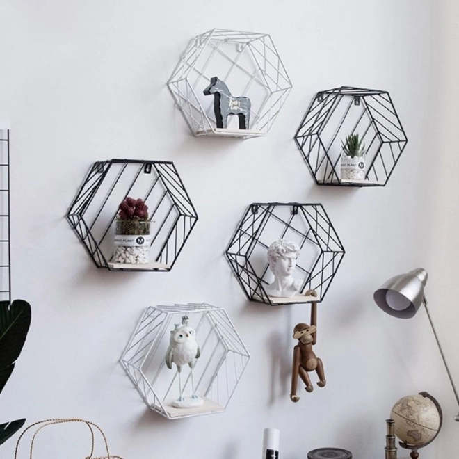 Hexagonal decorative shelf, LOFT style - white, pattern II
