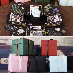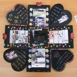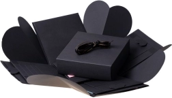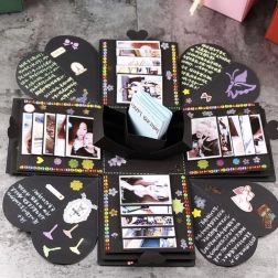 Surprise your loved ones with a unique gift in the form of a black exploding gift box. This box is a perfect surprise for weddings, Valentine's Day, engagements, birthdays, or any other festive occasion. You can place a piece of jewelry, watch, or any other small gift in the smallest compartment. Decorate the interior with photos, greetings, or anything that comes to mind, and make this gift something unforgettable.