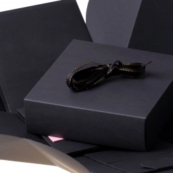 The black gift box with a shiny black ribbon and elegant appearance is suitable for all festive occasions.