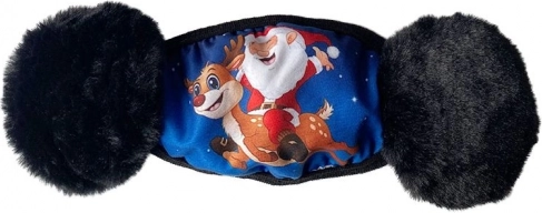 A Christmas protective face mask with ear covers for children will brighten the upcoming holidays. Cute pom-poms serve as ear protection against the cold. The mask protects against microorganisms, dust, and wind on cold winter days. Wearing a mask helps reduce the risk of infection.