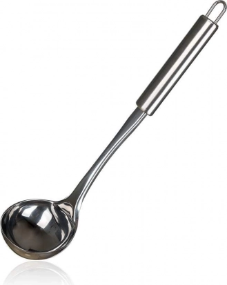 A practical BANQUET AKCENT ladle measuring 31 × 9 cm, made from high-quality stainless steel, ideal for professional kitchens and home use. It offers durable construction, easy maintenance, and is dishwasher safe. Thanks to the hanging loop, it’s always within reach.