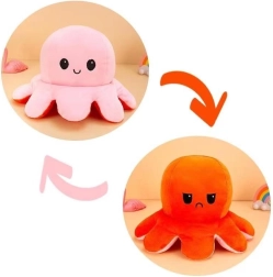 This reversible plush octopus is the perfect companion for both children and adults. With a simple flip you can switch the expression from smiling to sad or angry, while also changing the color from pink to orange. The super-soft material invites cuddling and works great as an anti-stress toy.