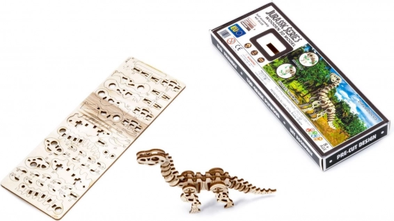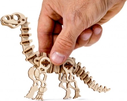 The wooden mechanical Diplodocus kit from the Jurassic series will captivate both kids and adults. Once assembled, the model comes to life – it has a moveable head and limbs, so you can enjoy not only the building process, but also playing with and displaying the model afterward. The kit is made of eco-friendly birch plywood and requires no glue or special tools.