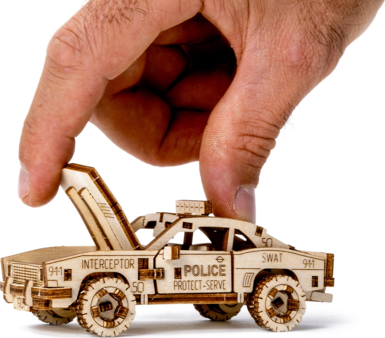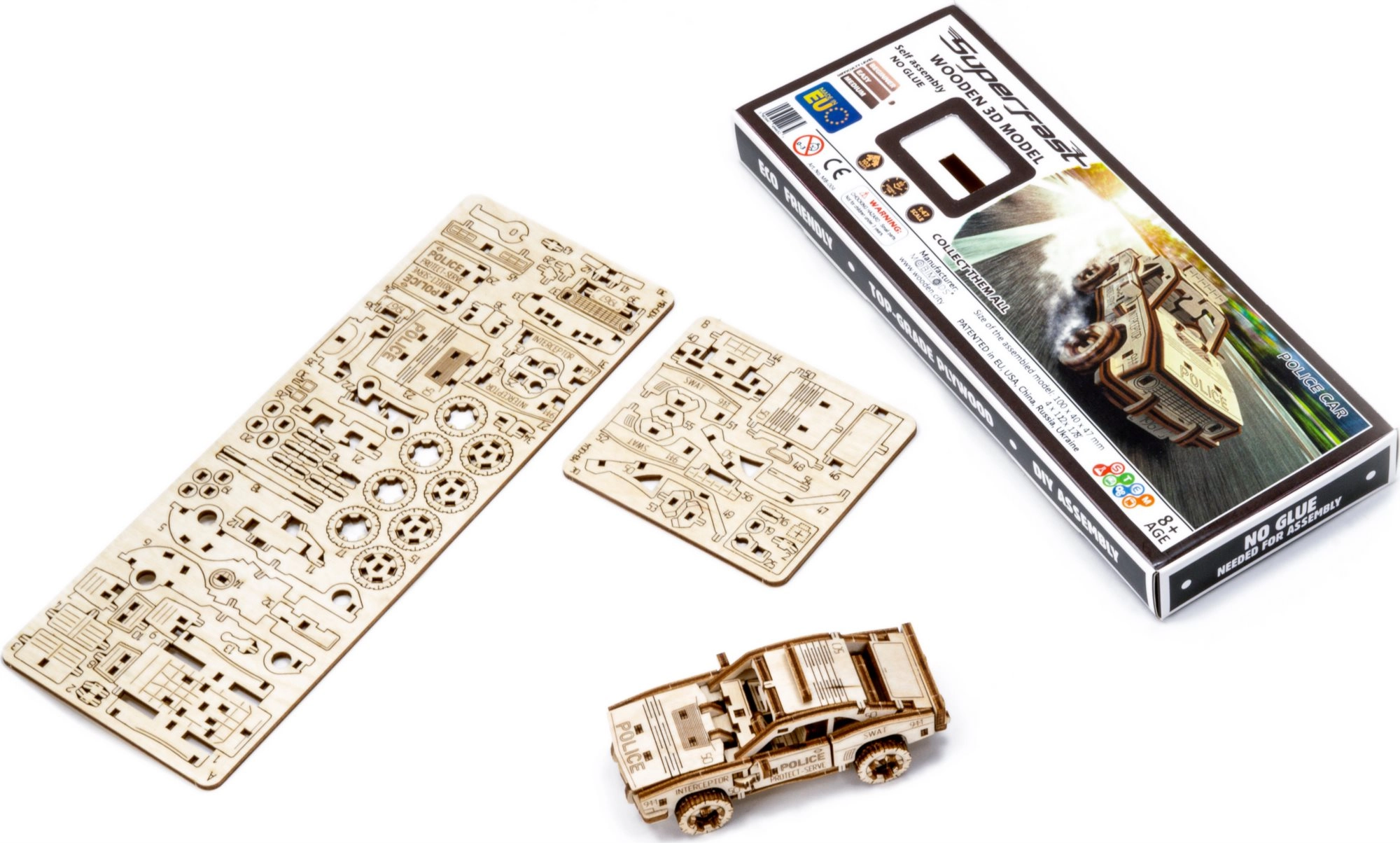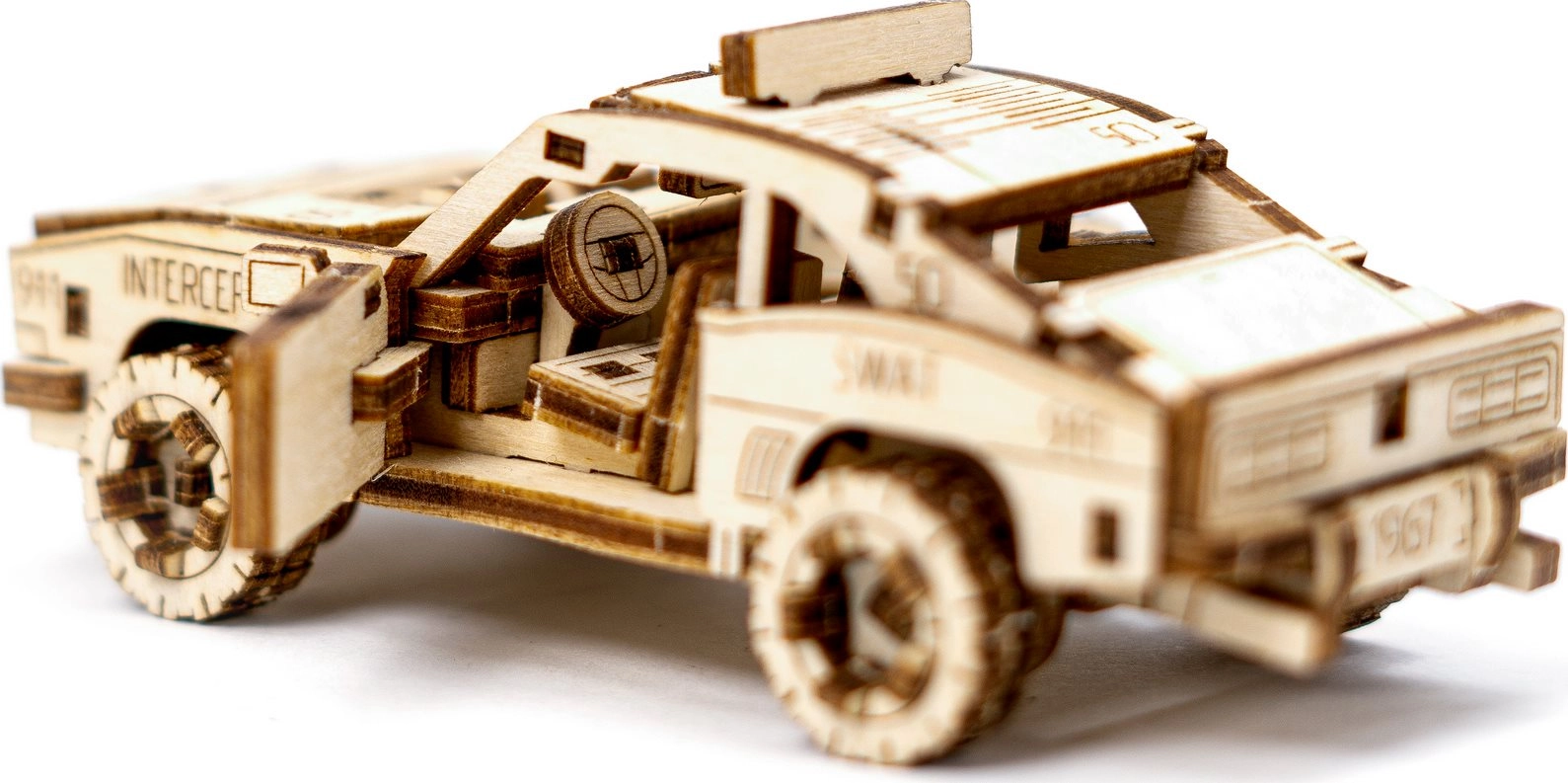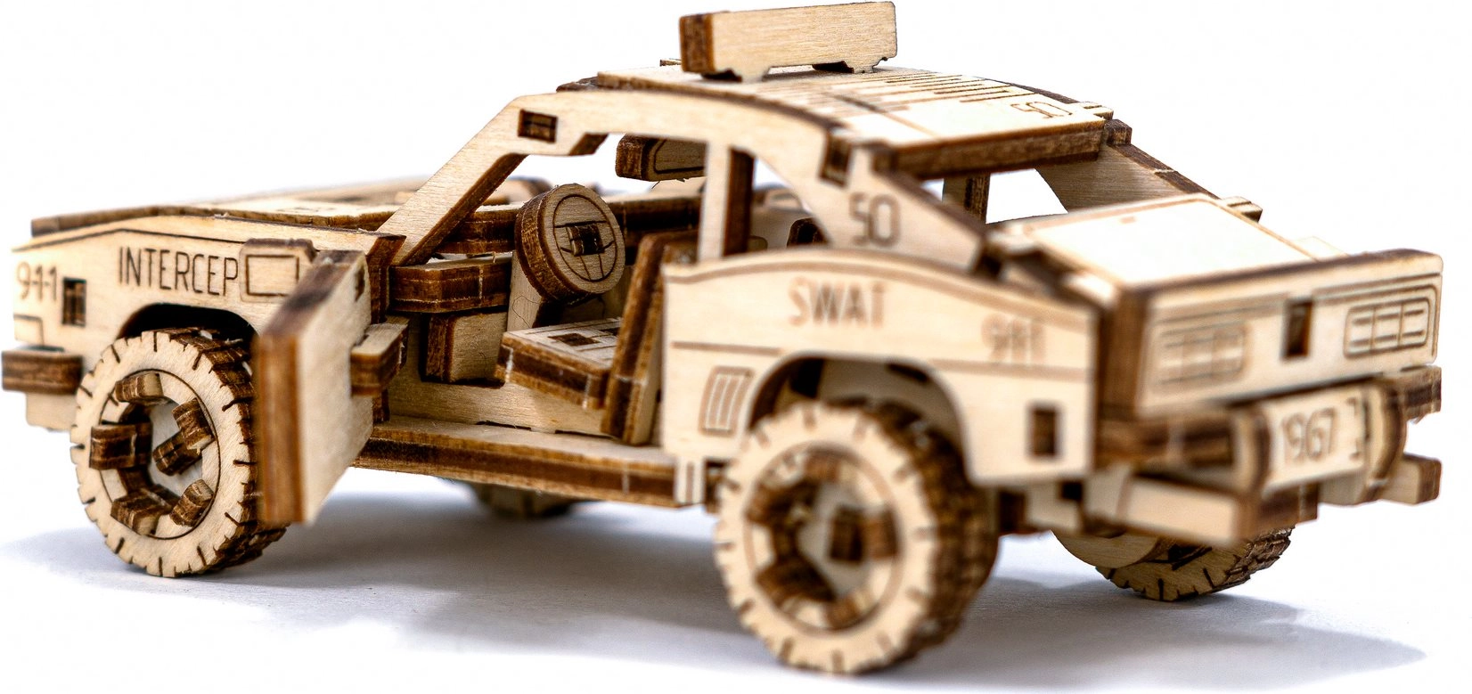 Build your own police car from high-quality birch plywood and enjoy a mechanical 3D puzzle that develops patience, spatial imagination, and creative thinking. The model delights both beginners and advanced builders and doesn’t take long—yet looks realistic thanks to fine laser engraving.