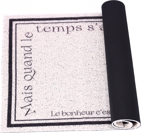 It can be rolled up for easy storage. The mat absorbs moisture and traps dirt, keeping the floor clean and dry.