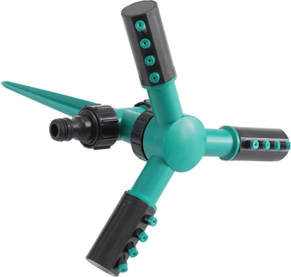 Efficient Watering: With three arms and a rotating head, the sprinkler evenly distributes water over the garden area, ensuring efficient irrigation of lawns, plants, and shrubs.