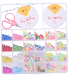 The creative set for making beaded bracelets and charms is a great choice for young artists and jewelry lovers. The set includes delicate beads in up to 24 different colors, 2 mm in size, a silicone elastic cord, scissors, and threading needles. It is a collection of tools and materials that allows children to express their creativity and develop fine motor skills.