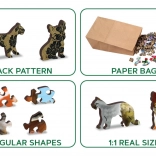 Specially shaped pieces in the form of animals and objects make assembling come to life. The patterned back adds a new challenge.