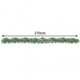 An elegant 270 cm Christmas garland with built-in LED lights brings a cozy festive atmosphere to your home. Thanks to the realistic needles, decorations of pine cones and red berries, and warm white light, it fits perfectly on a banister, mantel, door, or window sill. HQ quality, shapeable branches, and battery power for easy placement without an outlet.