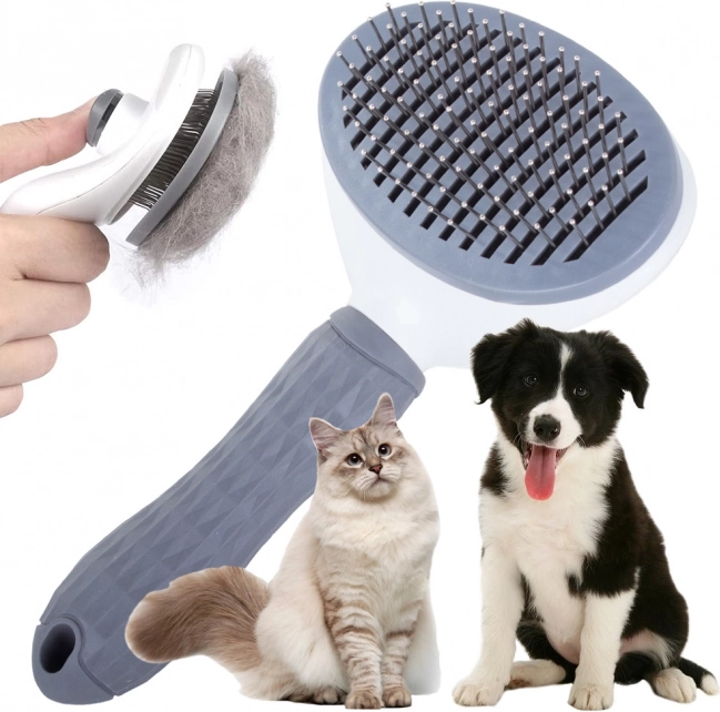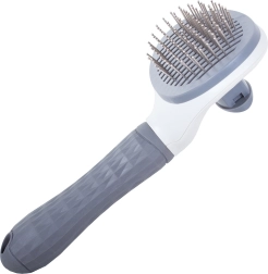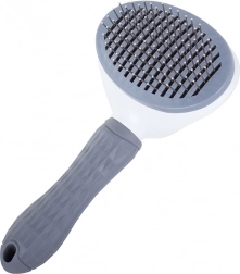 Discover the ease of fur grooming with the innovative self-cleaning brush. It features a comfortable, non-slip ergonomic handle and is perfect for daily use. With the special button, easily remove accumulated hairs from the brush.