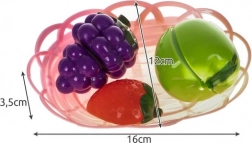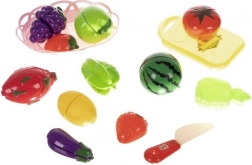 - Basket, cutting board, knife, selection of plastic fruits and vegetables (approx. 10 pieces)
