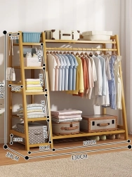 The hanging rail and five spacious shelves allow neat storage of shirts, trousers, towels, blankets, and storage boxes.