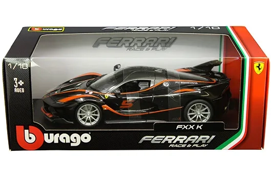 Collectible model of the Ferrari FXX K in 1:18 scale by Bburago offers precise bodywork, a detailed interior, and engine bay. Die-cast metal with plastic parts, opening sections, and functional steering and suspension make it a great piece for display or hands-on tech discovery.
