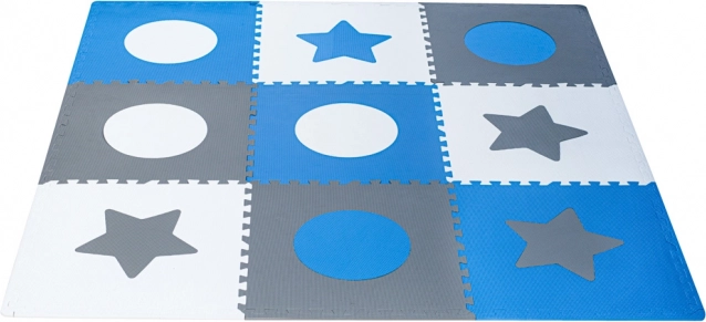 Create a safe, soft play area for your child with this foam puzzle mat. Nine large tiles measuring 60 × 60 cm provide a spacious, cushioning, and warm surface separated from the cold floor. Removable star and circle shapes support the development of motor skills and shape recognition, easy maintenance ensures quick cleaning, and the durable material offers long service life.