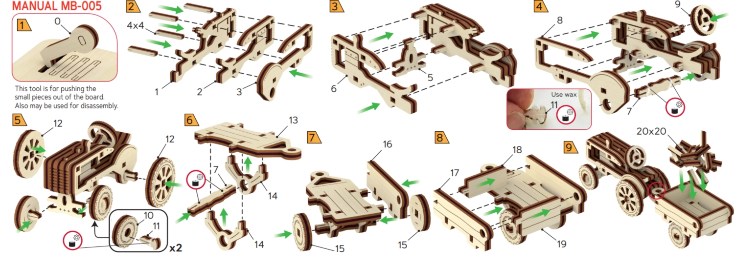Building takes approximately 30 minutes, and thanks to clear instructions even complete beginners can handle it. The finished model made from natural birch plywood stands out with rich details, moving wheels, and a pleasant wooden look that fits any interior—from a kids’ room to an office.