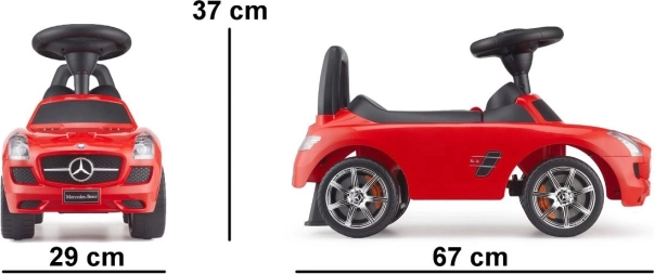 Inspired by the legendary MERCEDES‑BENZ SLS AMG, this ride‑on was designed with attention to detail and the comfort of young drivers. The aerodynamic shape, solid build, and easy handling bring plenty of riding joy, while the backrest and stable construction help maintain proper seating posture.