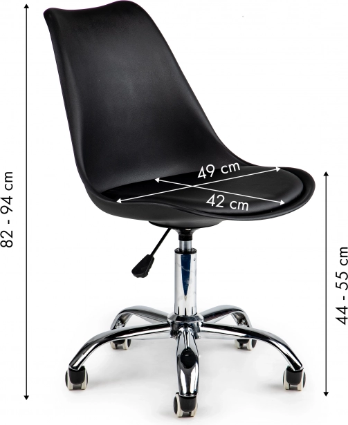 COMFORT IN YOUR OWN OFFICEFor effective work at a desk, you need a chair that lets you work comfortably at the computer for long periods. The ModernHome swivel chair is an ideal solution for offices, home workspaces, or company reception areas. Black with chrome accents will be perfect for modern interiors. |