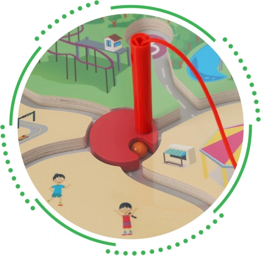 This colorful educational toy brings a world of attractions onto a single board. With the magnetic pen, little hands move the balls along safely enclosed tracks, learning patience, focus, and hand–eye coordination. Numbered and color-coded targets intuitively guide children toward solving tasks.