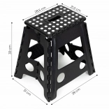 The stool can be folded into a suitcase shape with a comfortable handle. With a simple movement, it folds to a compact size for easy carrying and storage (39x5x52 cm).