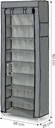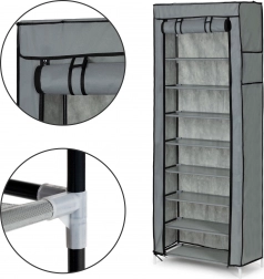 The sturdy frame made of metal tubes with plastic connectors ensures the strength of the entire structure. Shelves made of durable fabric are tensioned between the tubes, which adds rigidity and allows comfortable, well-organized storage. Thanks to the distance between shelves of about 15 cm, you can easily arrange both clothing and footwear.