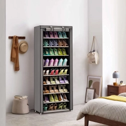 This fabric wardrobe is an ideal solution for the bedroom, hallway, or bathroom. The multi-tier shelf system provides ample space for T-shirts, sweaters, handbags, and shoes, while the zippered roll-up flap protects the contents from dust and moisture and lets you access stored items quickly.