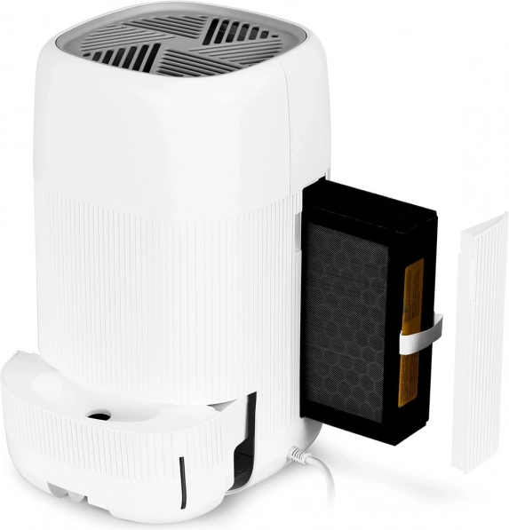 Compact 2‑in‑1 device for a healthy home: a dehumidifier and air purifier with 3‑stage HEPA 13 filtration removes up to 99.97% of particles ≥ 0.3 µm, dehumidifies up to 750 ml/day into a 1 L tank. Thanks to Auto‑Defrost it operates within 5–50 °C, offering quiet operation, a timer, and 2 modes for maximum comfort and safety.