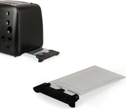 The removable tray catches crumbs and allows quick emptying, keeping your toaster clean and hygienic without lengthy maintenance.
