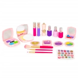 • Set contents (selection): fabric zip pouch, 3× brush, 2× lip gloss, 12× nail stickers, 3× nail polish, 1× lipstick, 1× glitter, 1× blush, 2× eye shadow