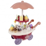 - Cart (5 assembly parts), 6× scoop ice cream, 3× ice cream bar, 6× lollipop, 1× spoon, 1× cup, 6× coin, 1× chocolate, 1× candy, 1× fruit milk, 1× juice cup, 1× bag of candies, 1× pack of cookies