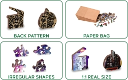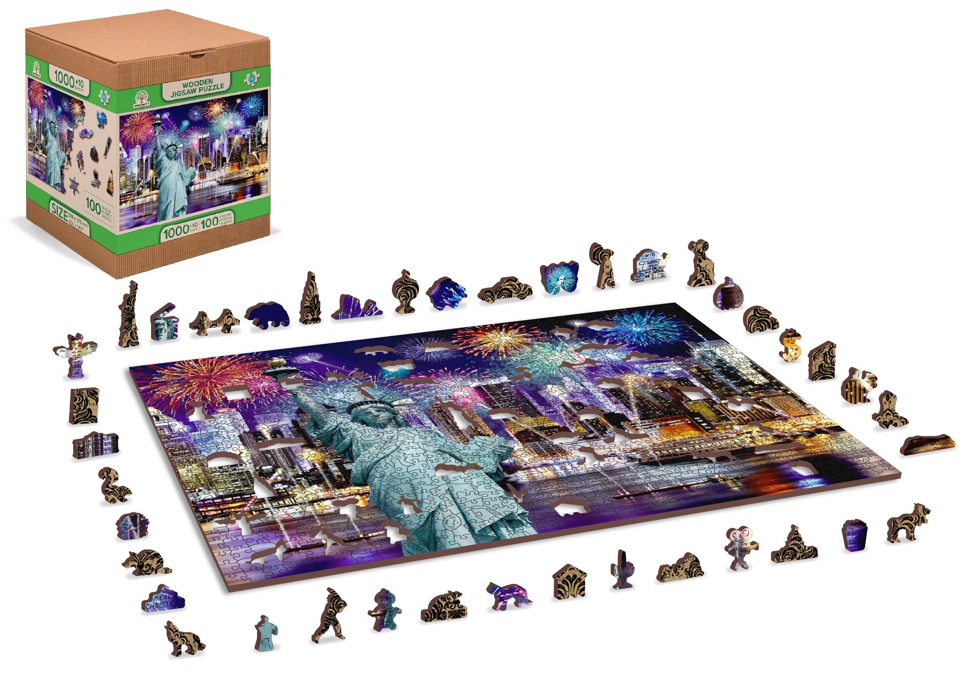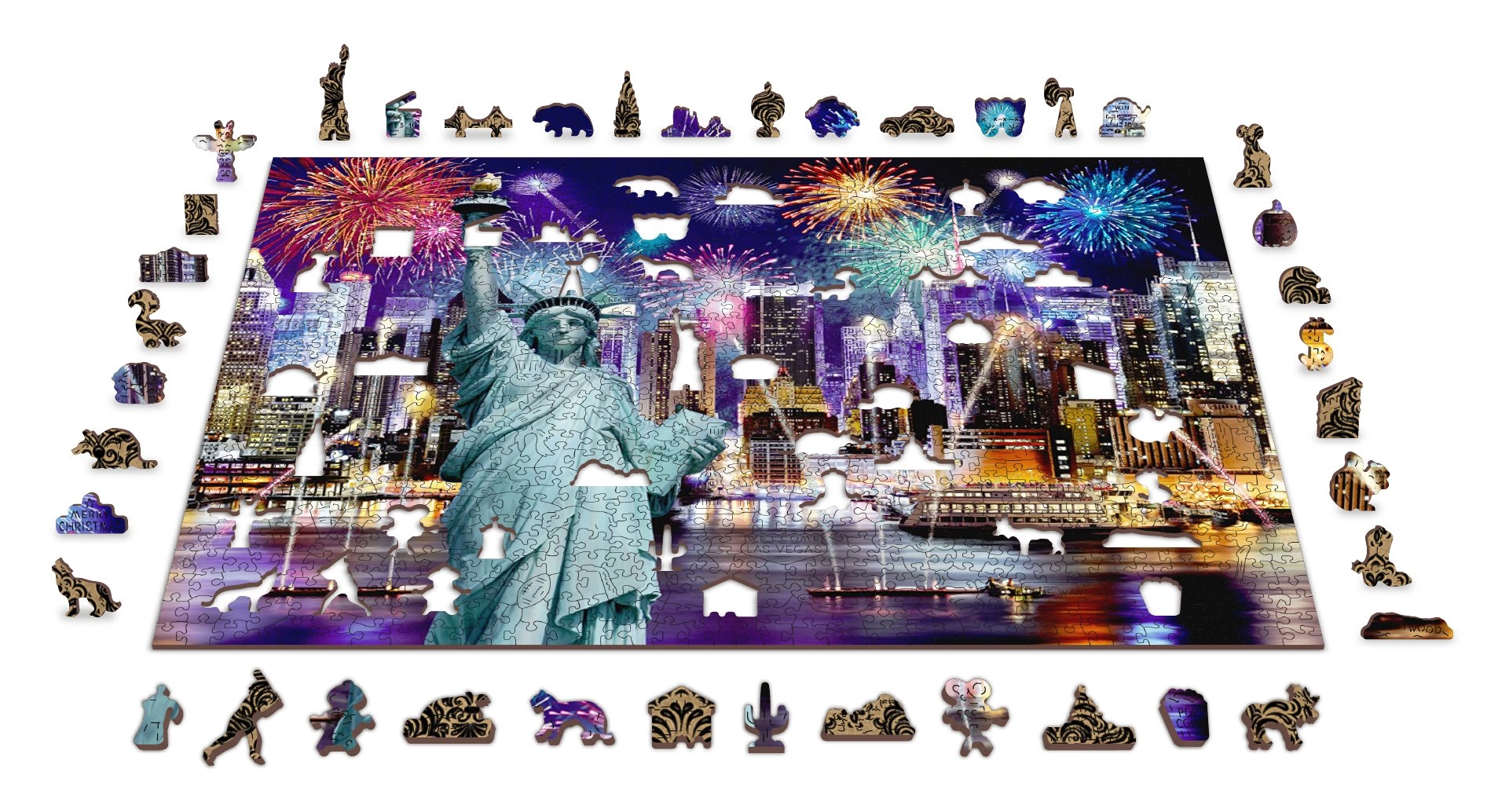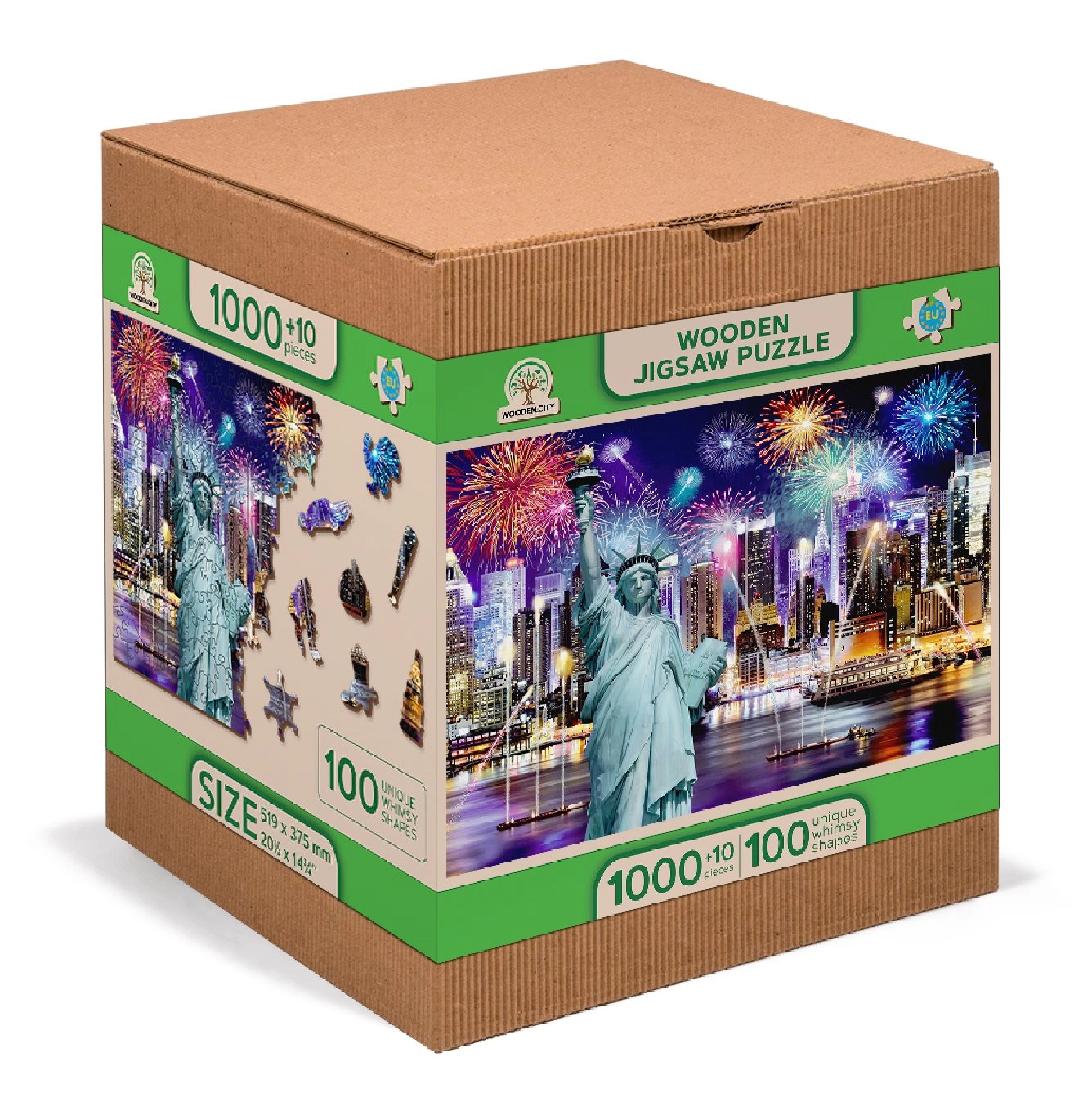 Embark on a journey to Night New York with our luxurious 2in1 wooden puzzle. Carefully cut from precise material, this puzzle offers uniquely shaped pieces that independently form animals, objects, or buildings while remaining environmentally friendly.