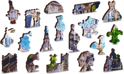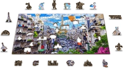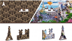 The Wooden Puzzle Busy Paris by WOODEN CITY is unique with its double-sided construction and specially shaped pieces, bringing the entire scene to life when assembling. Assembly is more challenging due to the differently shaped pieces but also more fun. It presents a challenge even for experienced puzzle enthusiasts.
