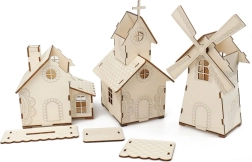 An adorable cottage-shaped coin bank that blends decoration with practical coin storage. It offers 2-in-1: an illuminated cottage and a gingerbread coin bank, a removable roof, and an LED candle with a replaceable 3V battery. Made from 3 mm poplar wood and delivered pre-assembled.