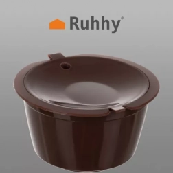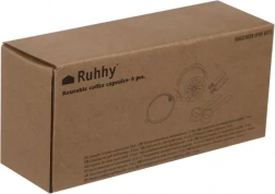 RUHHY reusable capsules are made of durable food-grade plastic and equipped with a silicone seal and a stainless-steel microfilter. This traps sediment, enhances aroma, and ensures a clean drink without fine particles. The lid with a precisely shaped opening facilitates water flow from the coffee maker and prevents leakage outside the capsule.