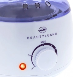 The compact BEAUTYLUSHH 100 W electric wax warmer reliably melts both hard and soft wax for at-home depilation. It offers smooth temperature control, a temperature indicator light, and a transparent lid with ventilation openings to maintain consistent heat. Thanks to the removable pot and intuitive controls, it is easy to use and maintain, helping you achieve long-lasting smooth skin in the comfort of your home.