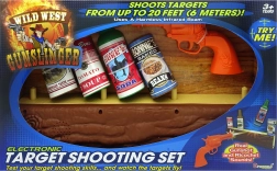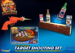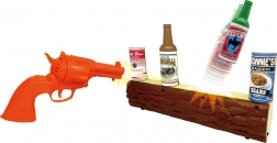 The set includes a shooting target, a revolver, and decorative accessories that let children create their own Wild West.