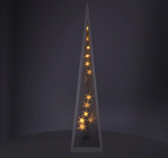 Plastic pyramid with a white metal frame filled with stars that move in the center of the pyramid ✨