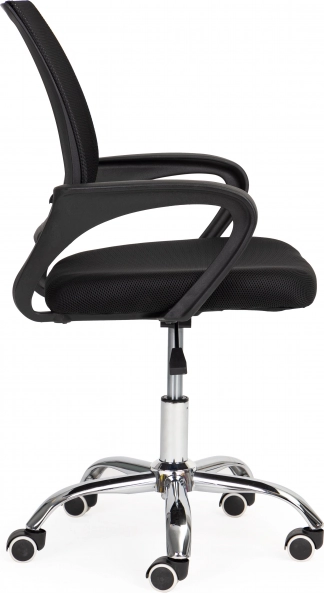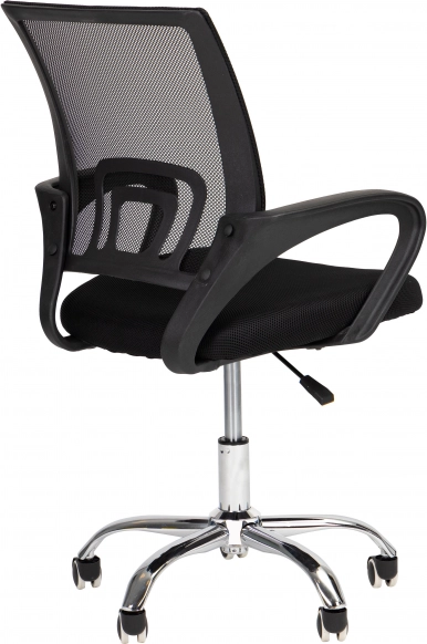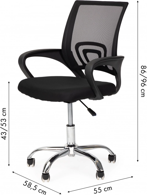 The chair is equipped with easy-to-use mechanisms for full adjustment, making it user-friendly. Durable mesh on the backrest ensures good ventilation, while the metal, chrome base with five wheels provides stability and mobility.