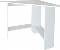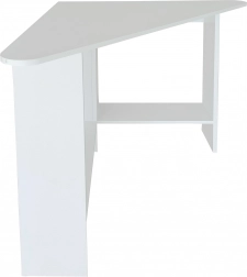 The modern corner desk is an ideal choice for smaller spaces where every centimeter counts. The triangular design fits neatly into a corner and creates a stable, clean-lined work surface. The top and shelves are made of durable laminated particleboard that is easy to maintain and looks elegant.