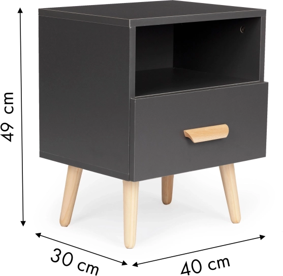 The functional layout with one drawer and an open shelf provides room for books, a phone, an alarm clock, and small items you want within reach. Durable laminated surfaces are easy to clean, and the sturdy construction ensures long-term stability.