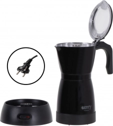 Strong espresso at home and on the go: CAMRY electric moka pot with a capacity of 300 ml brews up to 6 cups. 480 W power, 360° swivel base, cool-touch handle, and automatic shut-off for convenient and safe use.