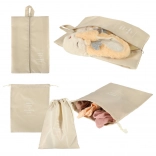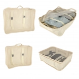 Get your luggage organized once and for all. This 8-piece set of travel organizers in elegant beige includes four clothing cubes, a shoe bag, a cosmetic pouch, a drawstring bag, and a small pocket for accessories. Thanks to the lightweight, durable polyester fabric, the organizers are easy to clean, resistant to dirt, and perfect for clear, organized packing for trips and everyday use.