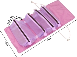 Perfect for cosmetics, jewelry, toiletries, and small accessories. Thanks to the hanging hook, you can easily place it in the bathroom or while traveling. The lightweight textile material and compact dimensions make it an ideal companion for handbags, backpacks, and suitcases.