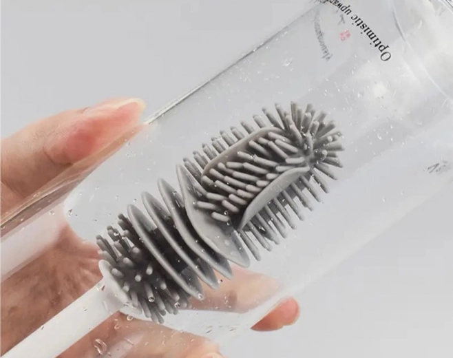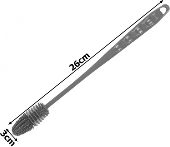 The ergonomically designed long handle allows easy reach into the depths of bottles and other narrow dishes, making washing easier.