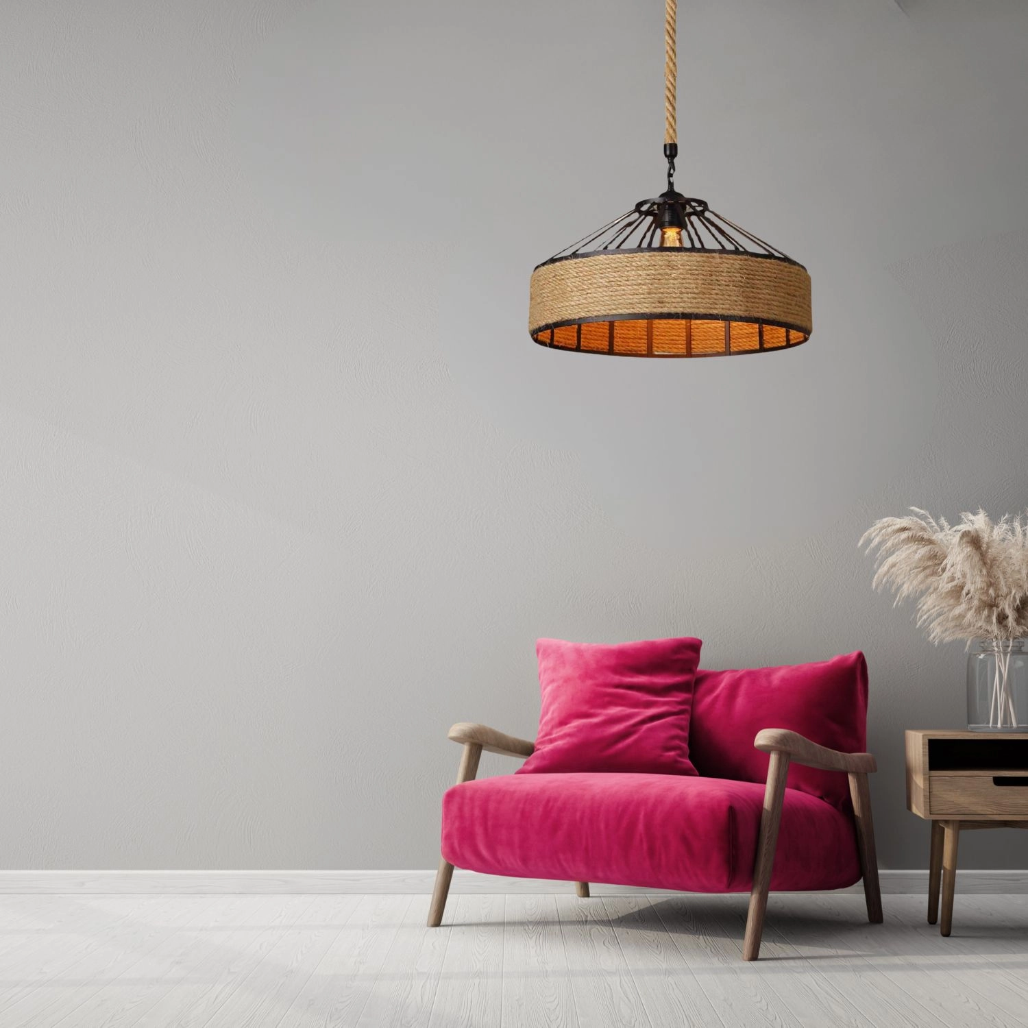 Refresh your home with a statement pendant that combines robust metal and natural hemp rope. Thanks to its distinctive shape and warm glow, it’s perfect for living rooms, dining areas, or above a kitchen island. In commercial interiors—from cafés to boutique hotels—it creates a cozy, memorable atmosphere.