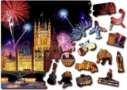 Our wooden puzzle 'London at Night with Fireworks' is not only fun but also educational and decorative. The precision of craftsmanship ensures long-lasting durability and the possibility of repeated assembly.