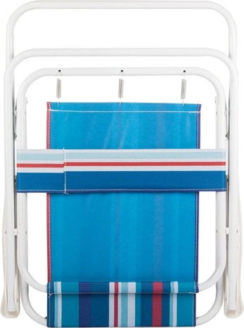 The chair folds flat, so it takes up minimal space in a car trunk, caravan, or beach bag. Setup takes seconds—just open it and start relaxing.